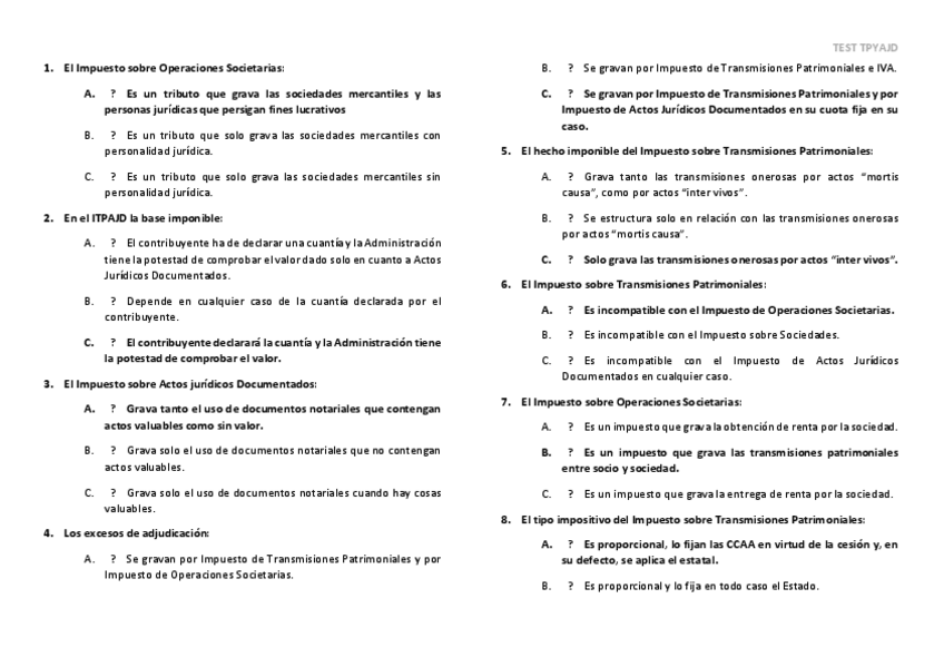 He publicado nuevos test de 3º Derecho Financiero y Tributario II: IVA Y TPyAJD
