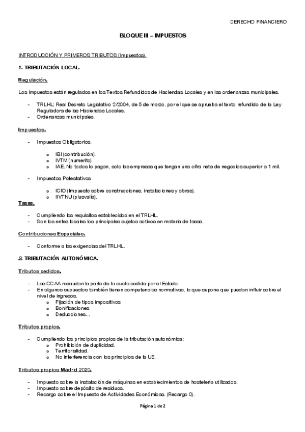 BLOQUE III. Impuestos.Dcho financiero