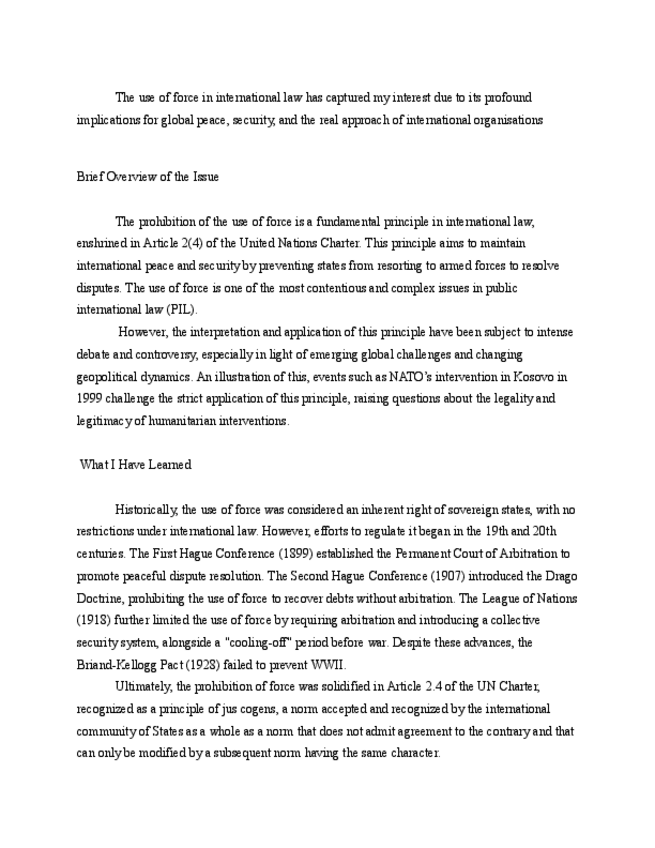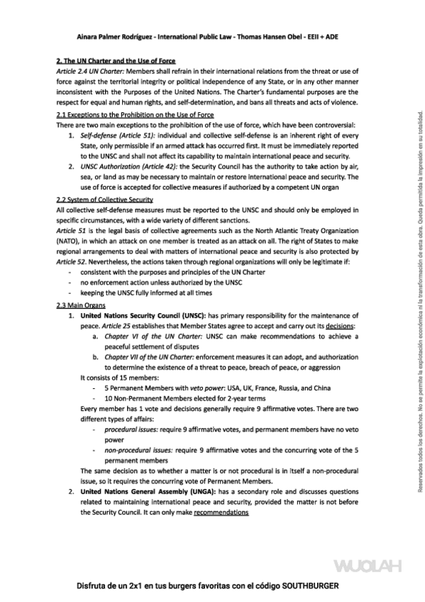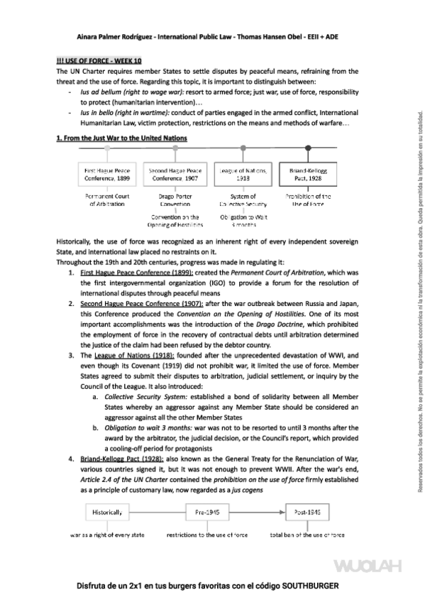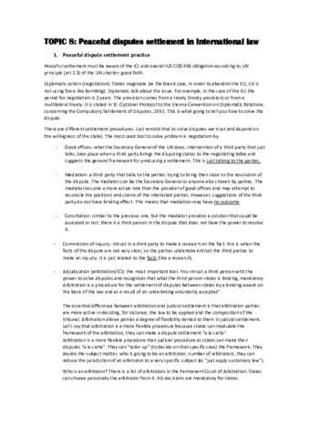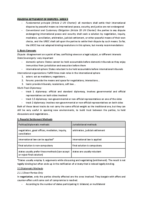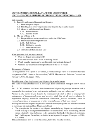 He publicado nuevos apuntes de 2º Derecho Internacional Público: 10 & 11 PEACEFUL SETTLEMENT OF DISPUTES & THE USE OF FORCE.pdf