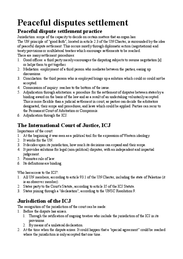 Lecture 9. Peaceful disputes settlement