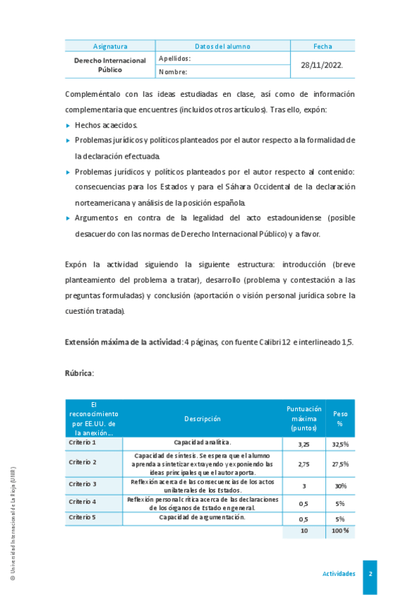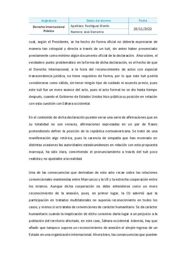 He publicado nuevos trabajos de 2º Derecho Internacional Público: ACTIVIDAD 1 DIP: El reconocimiento por EE. UU. de la anexión marroquí del Sahara Occidental en perspectiEva: aspectos jurídicos y políticos.pdf