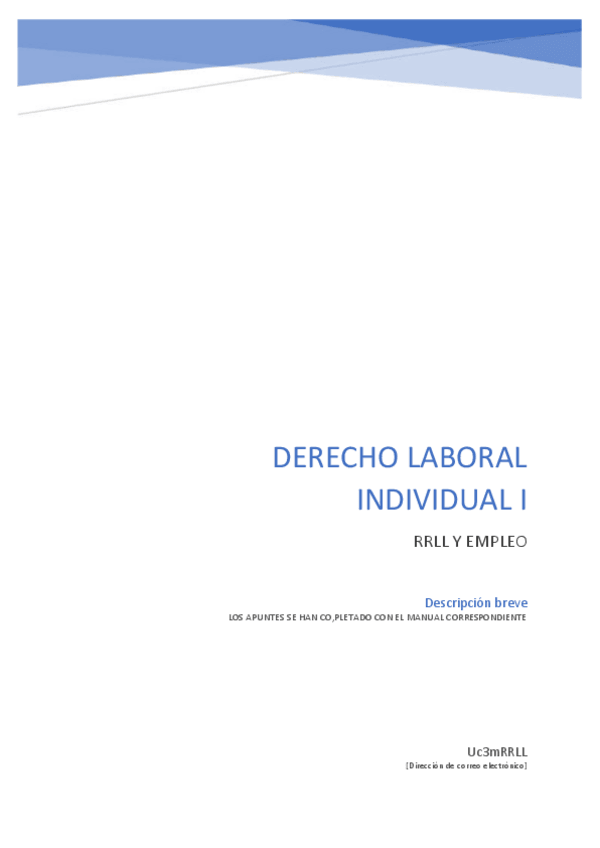 He publicado nuevos apuntes de 1º Derecho laboral individual I: Derecho laboral individual I