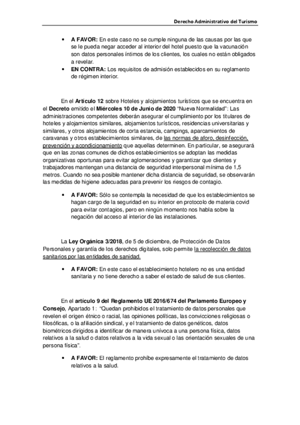 Derecho laboral y Administrativo del Turismo
