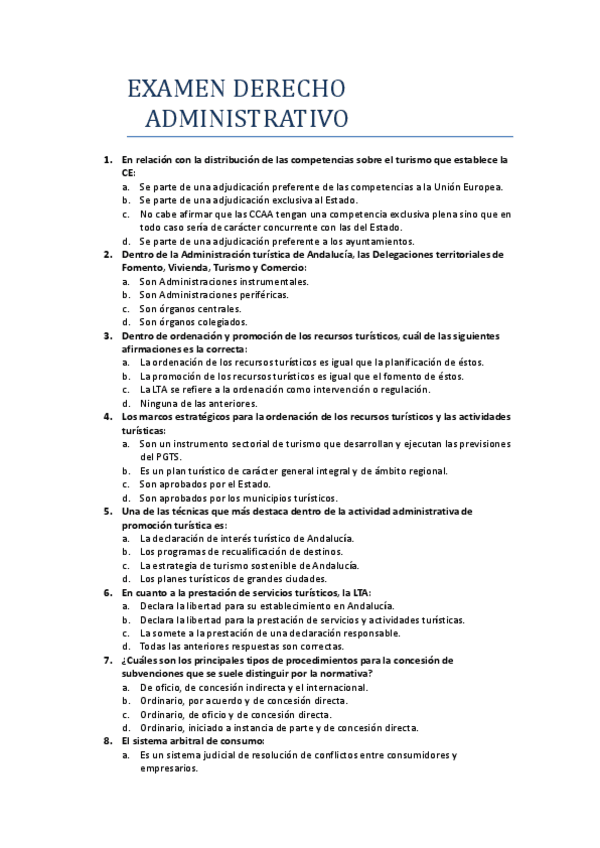 He publicado nuevos examenes de 2º Derecho laboral y Administrativo del Turismo: PREGUNTAS-EXAMEN-DERECHO-ADMINISTRATIVO.pdf