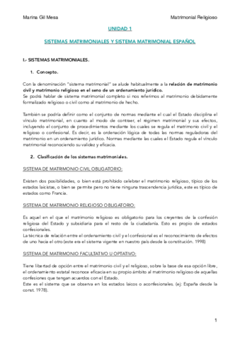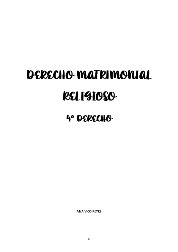 Apuntes completos de Derecho Matrimonial Religioso, para el curso 2025/26 con María José Parejo Guzmán.