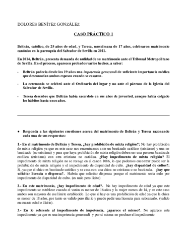 CASOS PRÁCTICOS DE DERECHO MATRIMONIAL RELIGIOSO