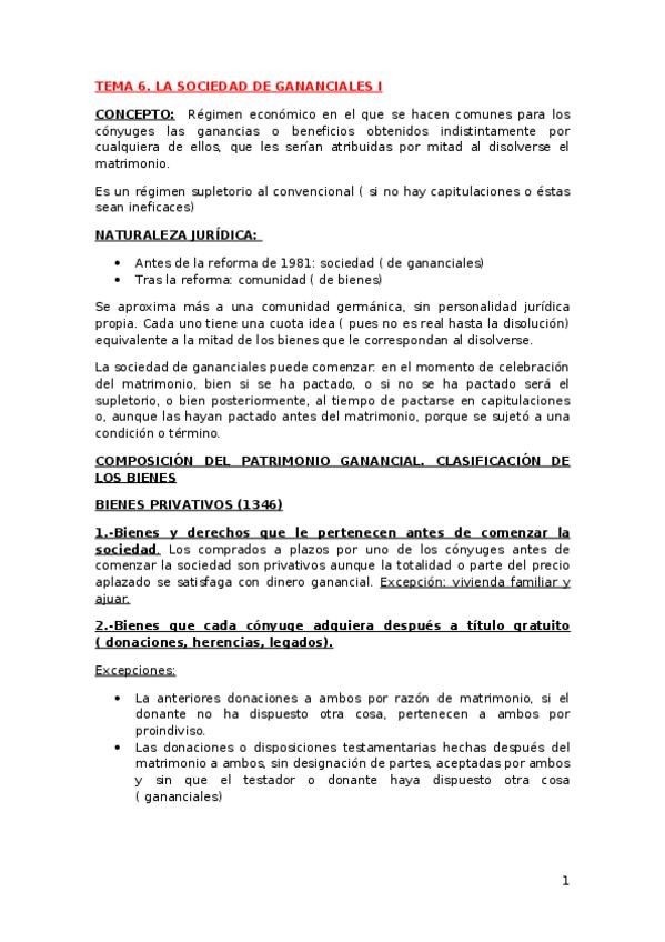 Apuntes - TEMA 6. LA SOCIEDAD DE GANANCIALES I.docx