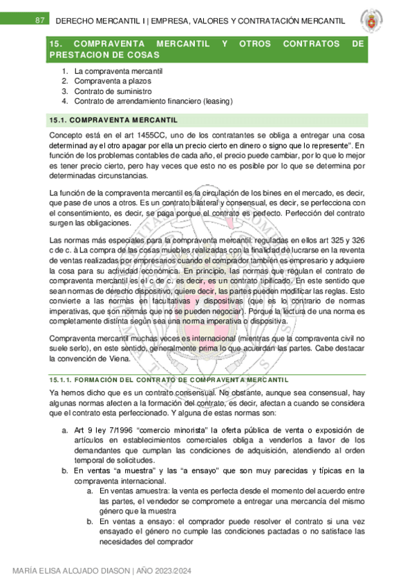 DERECHO MERCANTIL I (2023/2024)