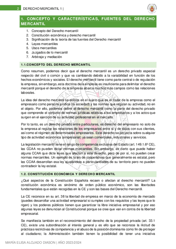 DERECHO MERCANTIL I (2023/2024)
