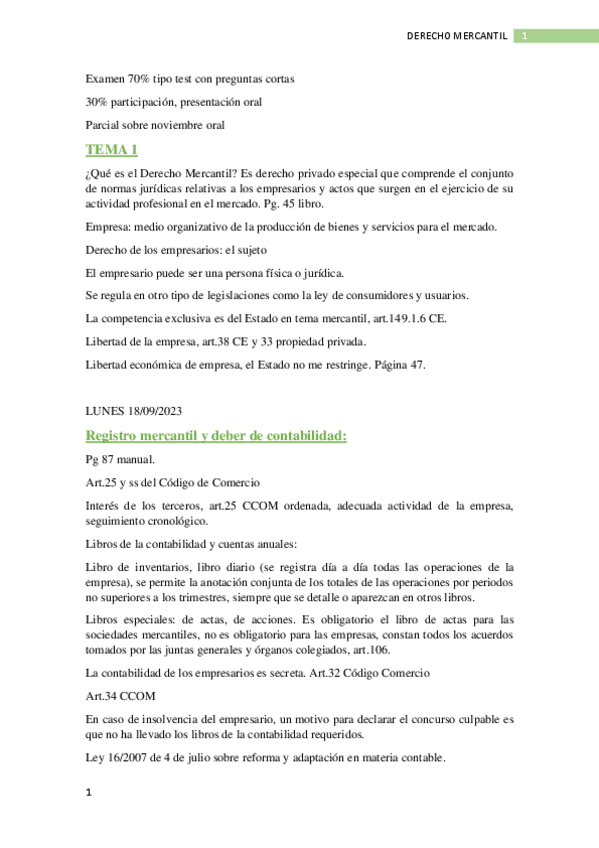 Asignatura completa de Derecho mercantil, apuntes de clase completados con el manual