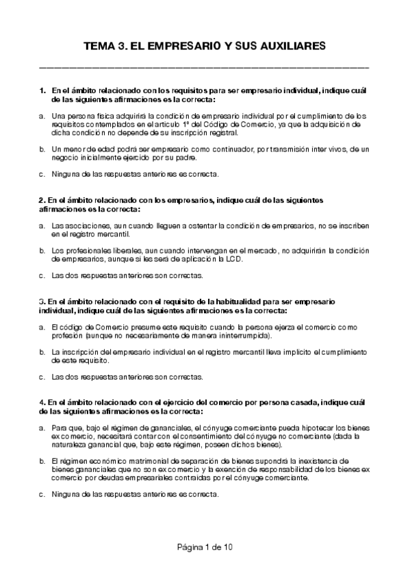 Preguntas exámenes Derecho Mercantil I