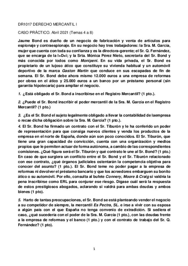 Casos prácticos derecho mercantil I