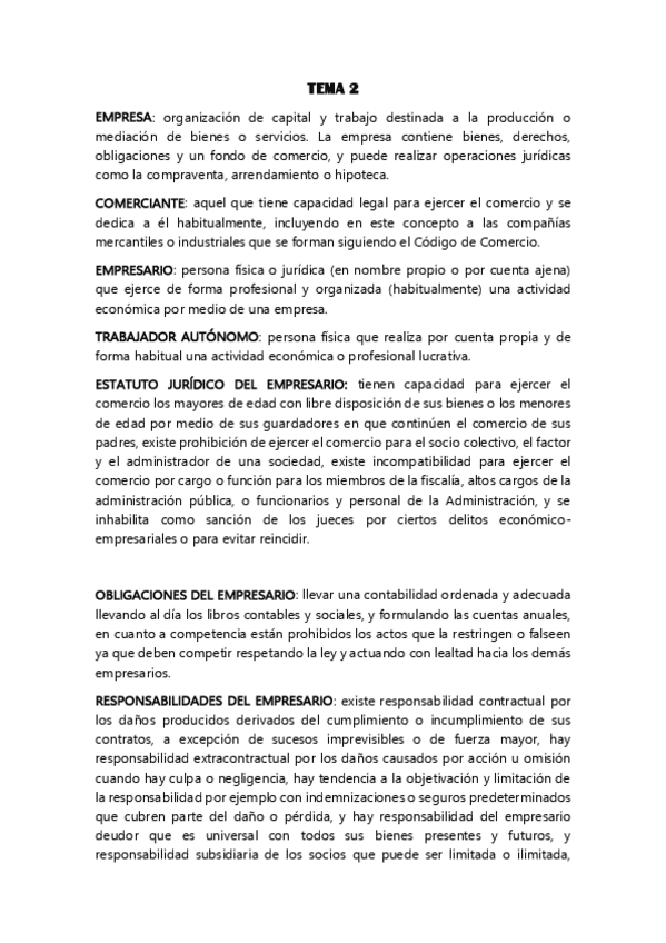 Resumen de todo el tema 2 de Derecho Mercantil (ADE) libro: Apuntes de Derecho Mercantil (adaptado a los estudios de ADE, Economía y Finanzas y Contabilidad)