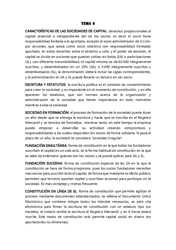 He publicado nuevos apuntes de 1º Derecho Mercantil I: Tema 4 - Sociedades de capital - Resumen completo - ADE UV.pdf