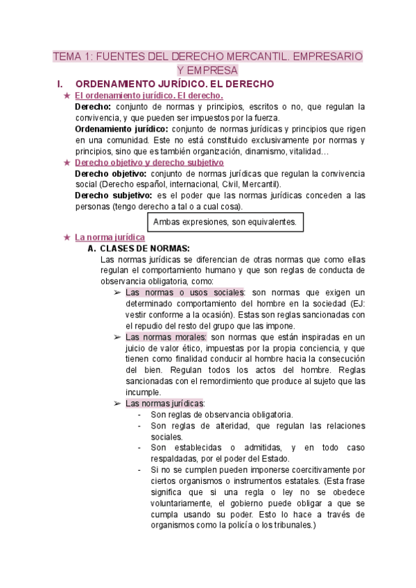 Resumen de todo el tema 1 de Derecho Mercantil (ADE) libro: Apuntes de Derecho Mercantil (adaptado a los estudios de ADE, Economía y Finanzas y Contabilidad)