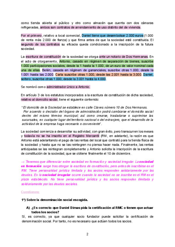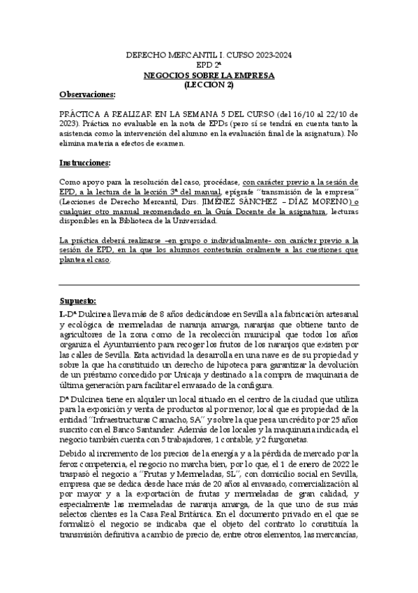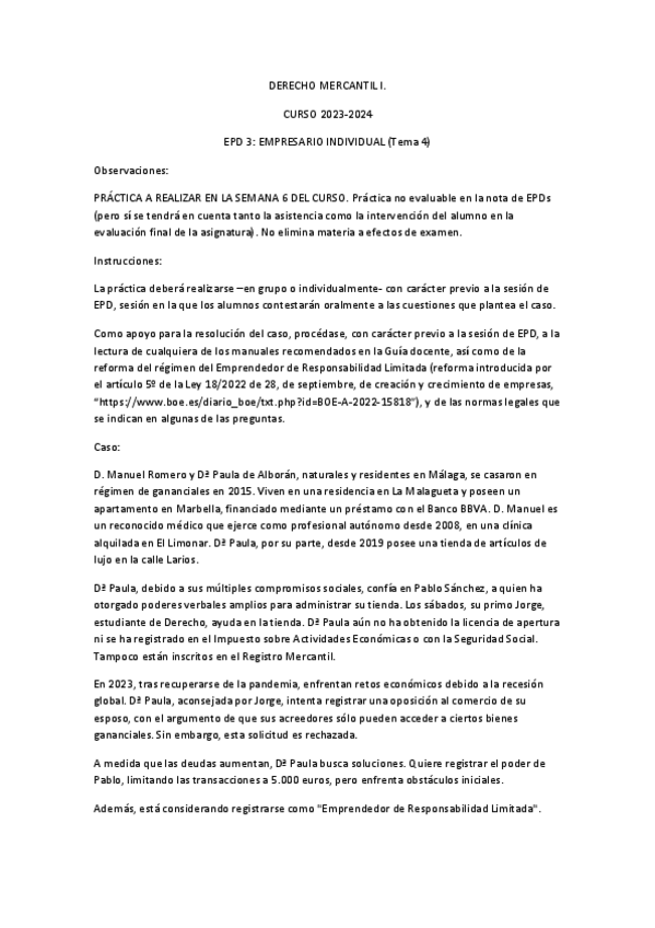 Supuesto práctico de mercantil 1 (pueden caer en el examen)