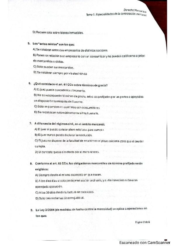 Examen tipo test ordinaria Roca + Letra de cambio examen ordinaria