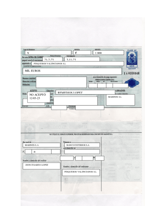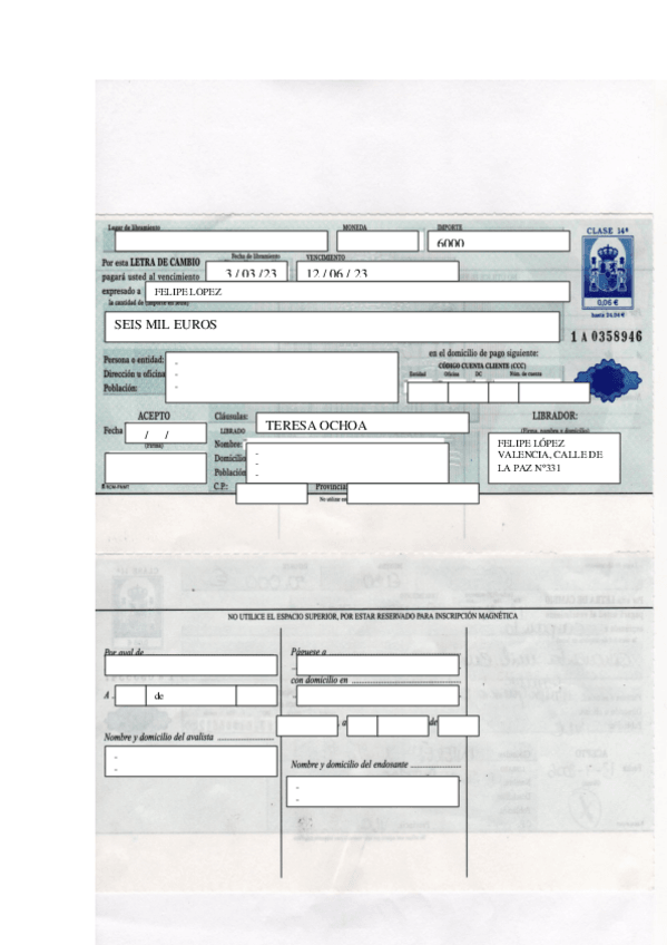 ejemplos de letra de cambio hechas