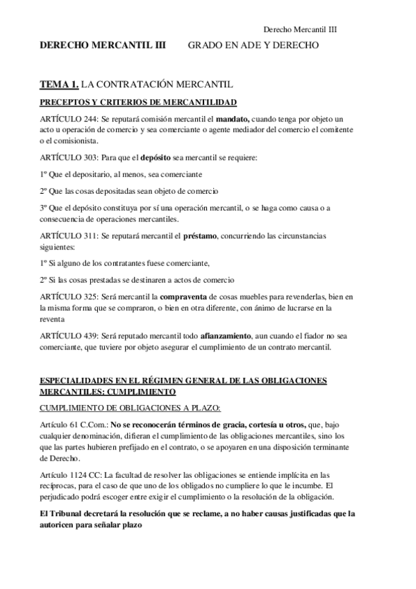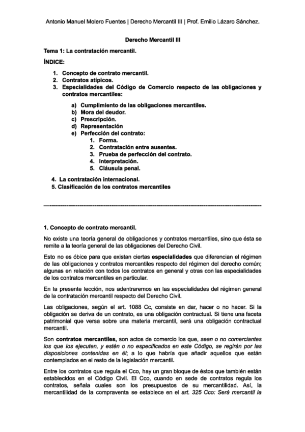Tema 1 de Derecho Mercantil III. Apuntes de clase de Emilio Lázaro.