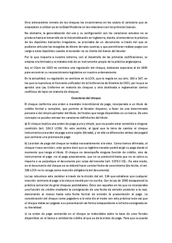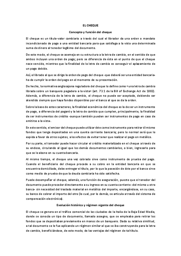 He publicado nuevos apuntes de 4º DERECHO MERCANTIL IV: TÍTULOS-VALORES, INSTRUMENTOS DE PAGO Y CRÉDITO Y DERECHO CONCURSAL: cheque.pdf