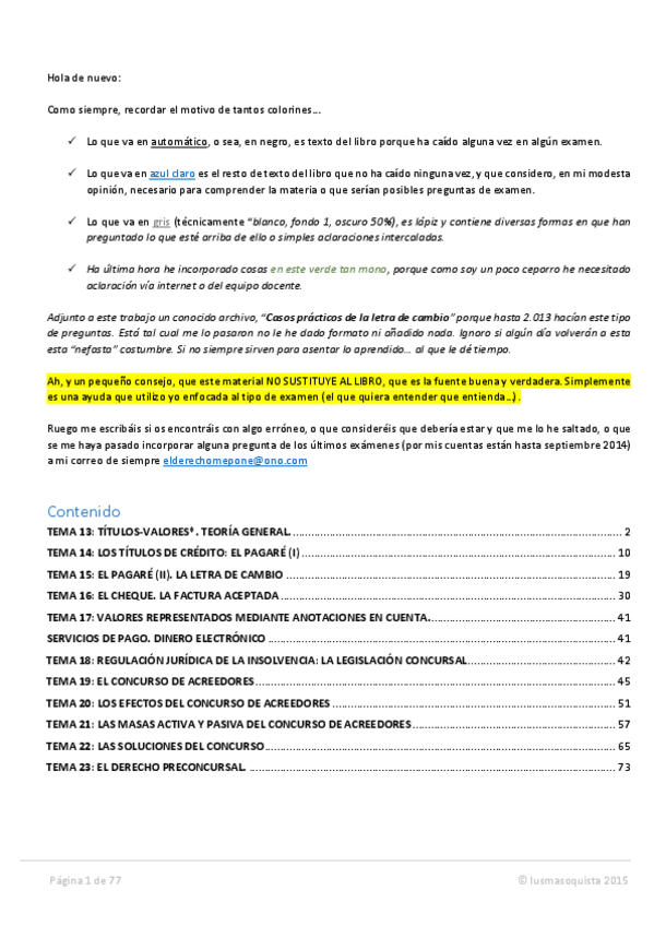 He publicado nuevos apuntes de 4º DERECHO MERCANTIL IV: TÍTULOS-VALORES, INSTRUMENTOS DE PAGO Y CRÉDITO Y DERECHO CONCURSAL: apuntes-78-pag.pdf