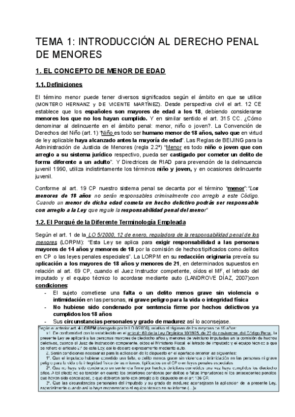 APUNTES COMPLETOS DEL MANUAL Y CLASE Penal de Menores