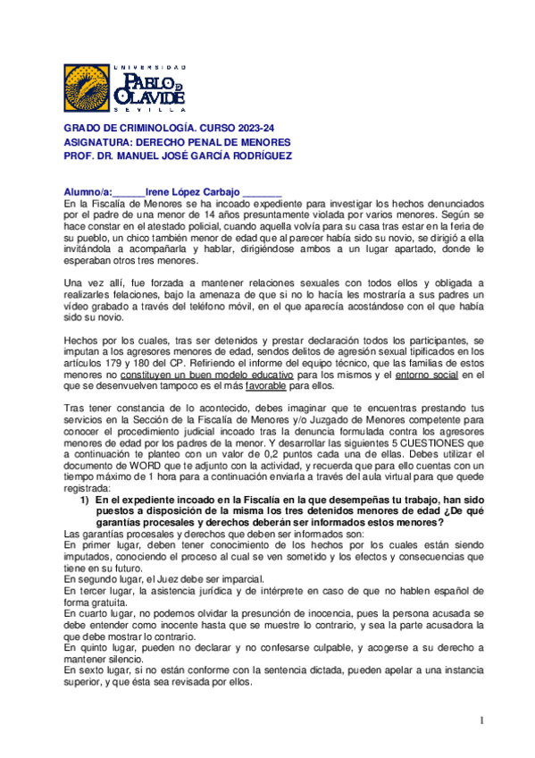 Examen Derecho Penal de Menores