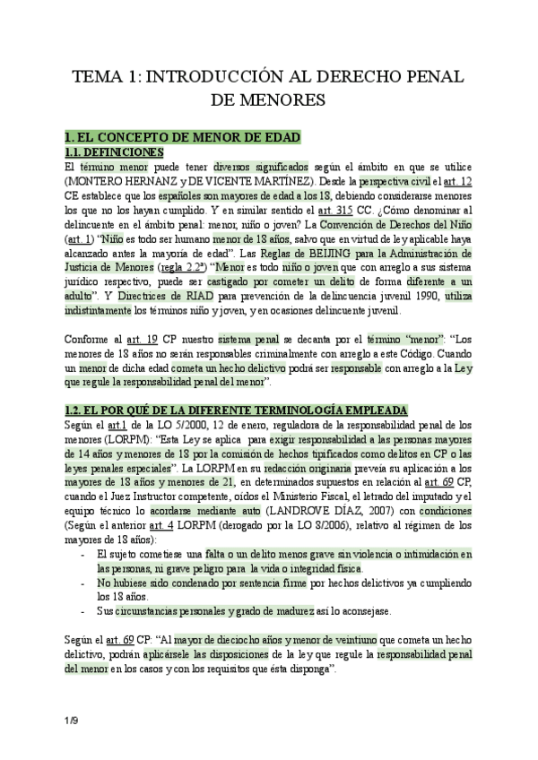 Apuntes Derecho Penal de Menores