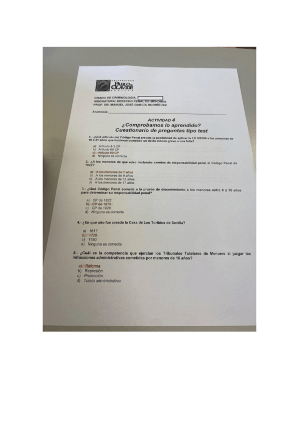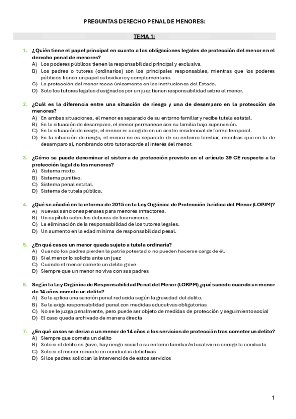 He publicado nuevos examenes de 3º Derecho Penal de Menores: Preguntas-test.pdf