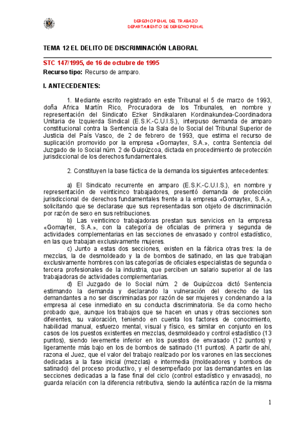 He publicado nuevos apuntes de 4º Derecho Penal del Trabajo: TEMA-12-CASO-DISCRIMINACION-LABORAL-comentario-STC.docx.pdf