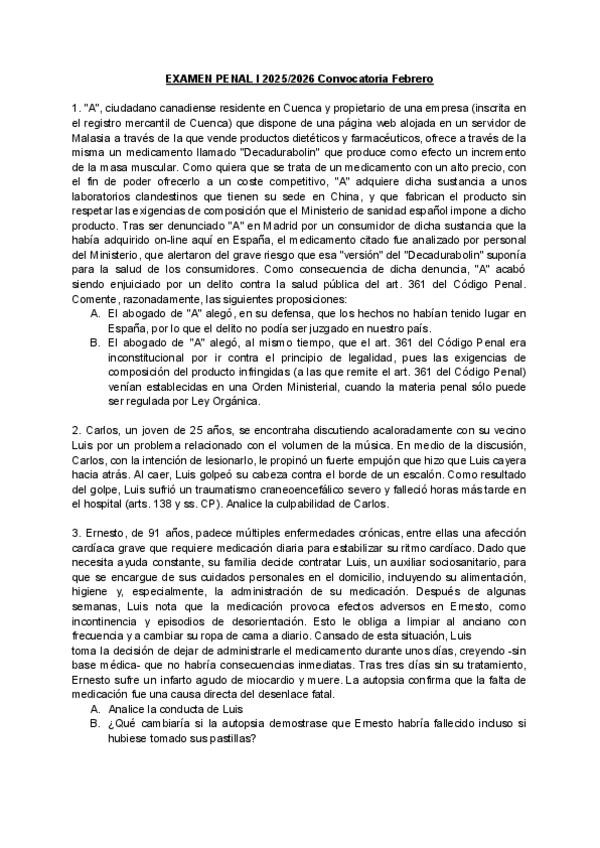 EXAMENES RESUELTOS AÑO 2025-2026 DERECHO PENAL I