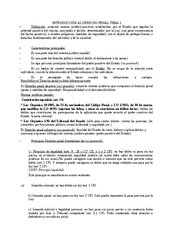 Resumen Tema Derecho Penal todas las universidades