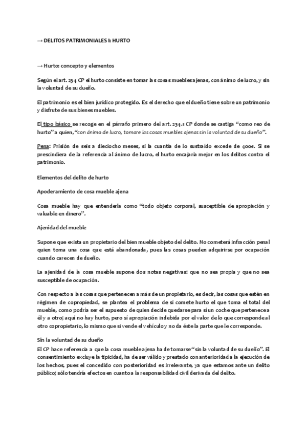 Derecho Penal II, apuntes primer cuatri, grupo 1, curso 2024-2025, UVA