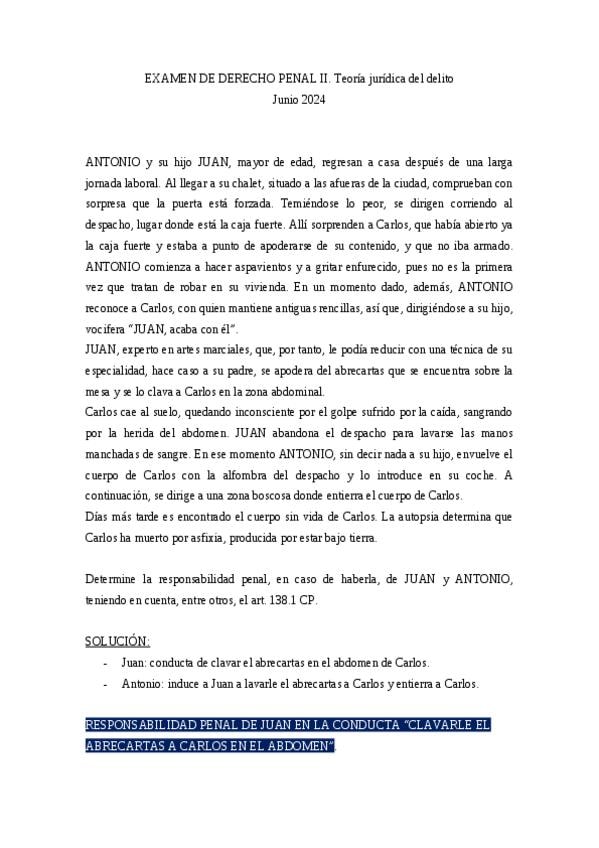 He publicado nuevos ejercicios de 2º Derecho Penal II: Teoría del Delito: CASO-ANTONIO-Y-JUAN-JUNIO-2024ABRECARTAS.docx