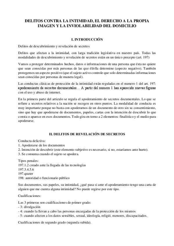 He publicado nuevos apuntes de 2º Derecho Penal II: TEMA 7. DELITOS CONTRA LA INTIMIDAD- EL DERECHO A LA PROPIA IMAGEN Y A LA INVIOLABILIDAD DEL DOMICILIO. DELITOS CONTRA EL HONOR.pdf