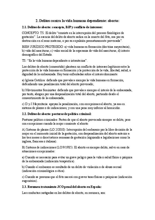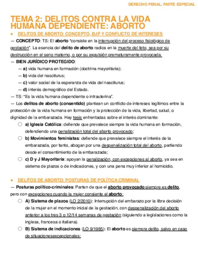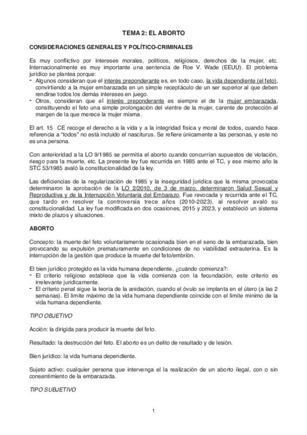 Apuntes del Tema 2. El aborto. Lesiones al feto (Tema 3 del manual). Dichos apuntes han sido elaborados con la información proporcionada por el manual “Sistema de Derecho Penal Parte Especial” de Lorenzo Morillas Cueva, las explicaciones del profesor Anto