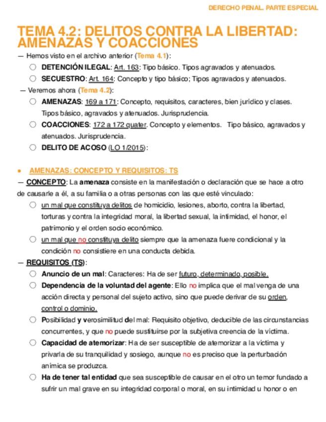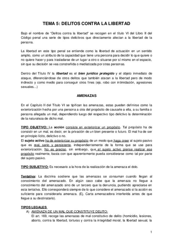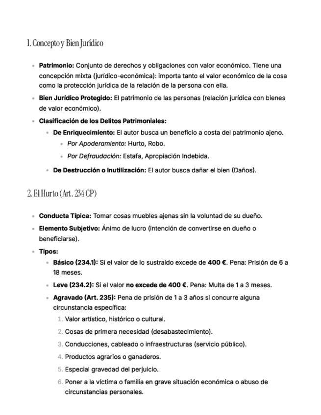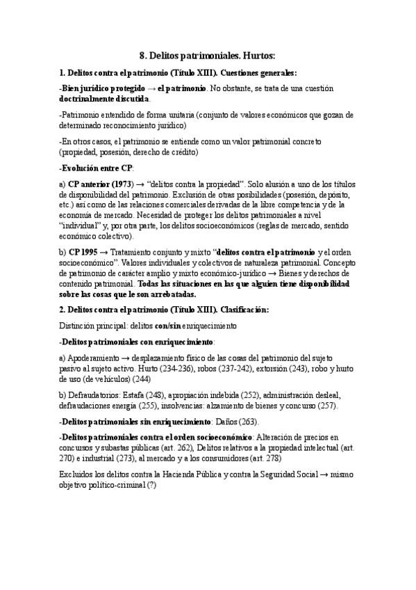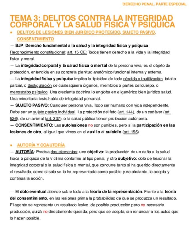 Apuntes sacados del Manual de derecho Penal. Parte Especial, en base a lo visto en clase durante la asignatura