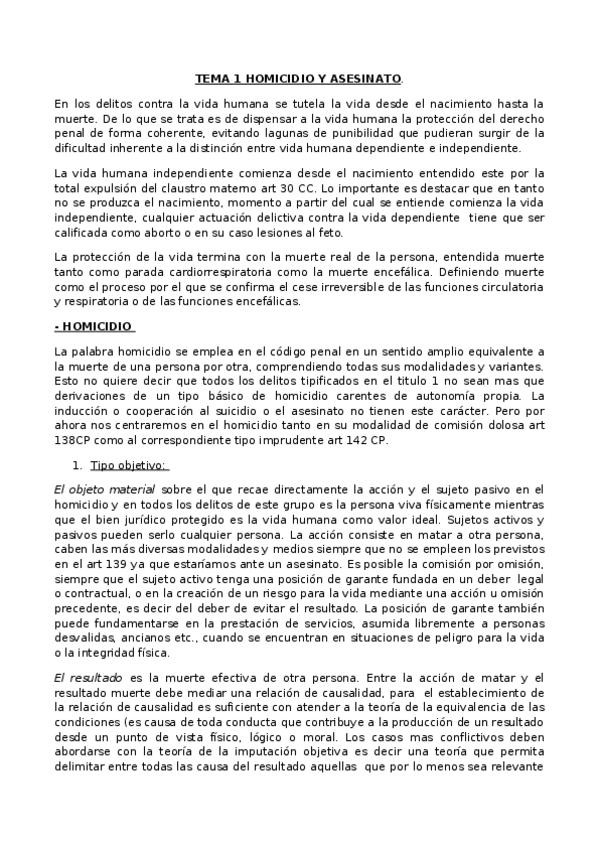 He publicado nuevos apuntes de 3º Derecho Penal. Parte Especial: HOMICIDIO-ASESINATO.pdf