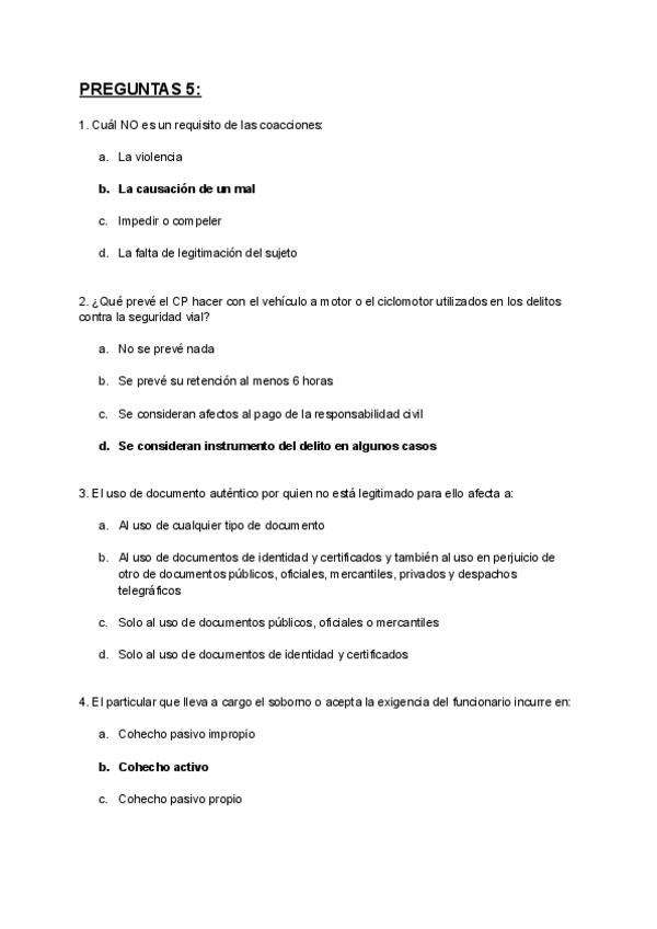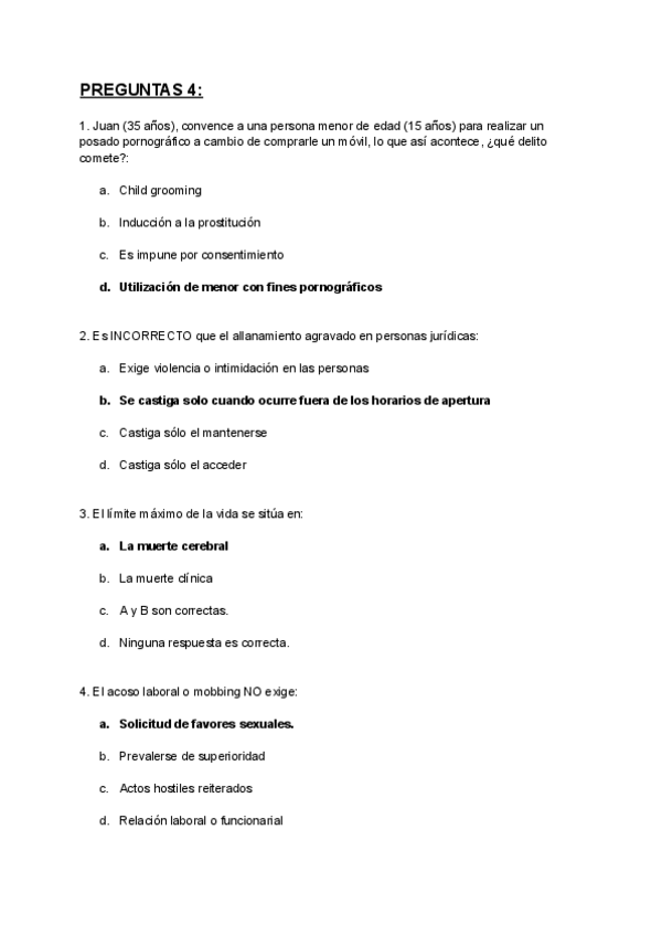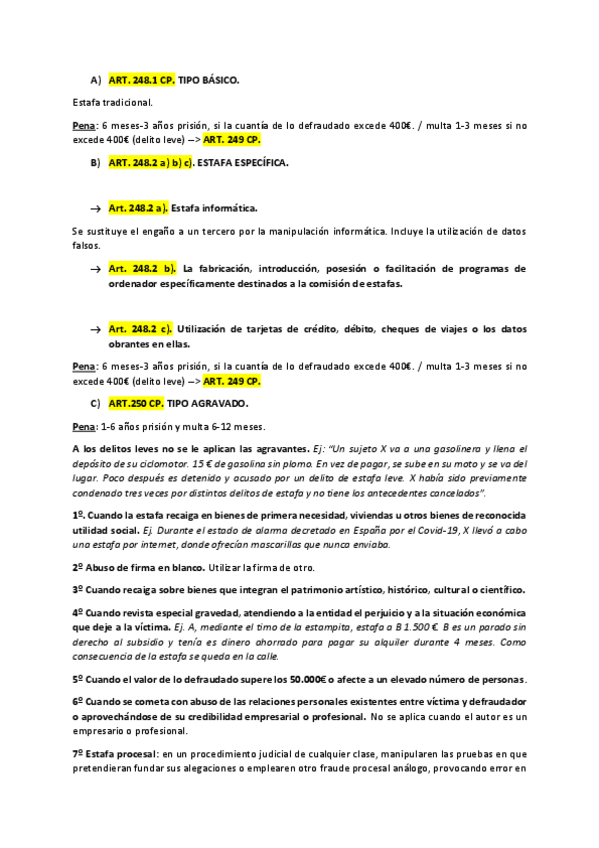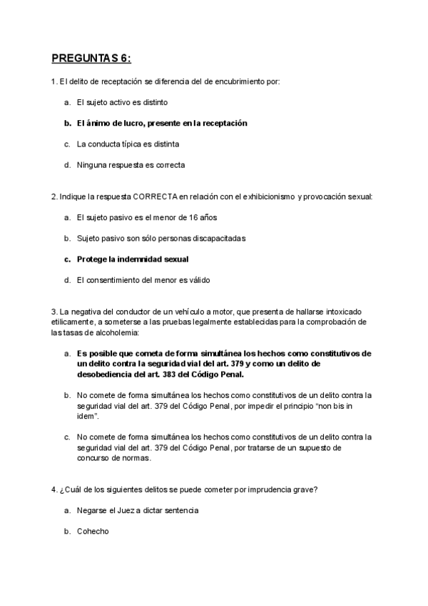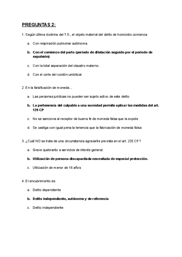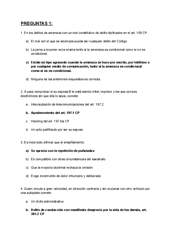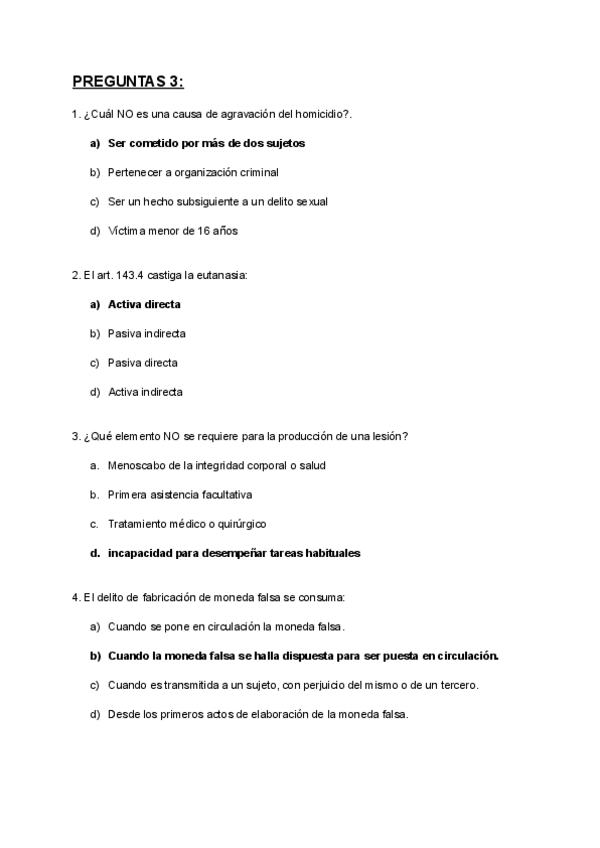 Preguntas Derecho Penal. Parte Especial