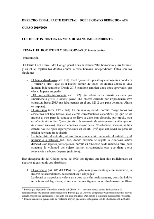 He publicado nuevos apuntes de 2º Derecho Penal. Parte Especial: Homicidio-2020.docx