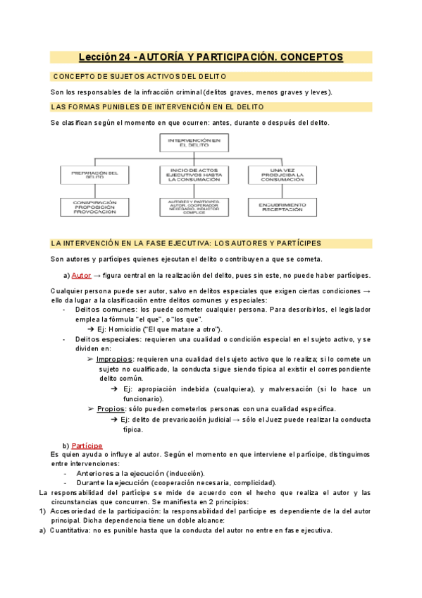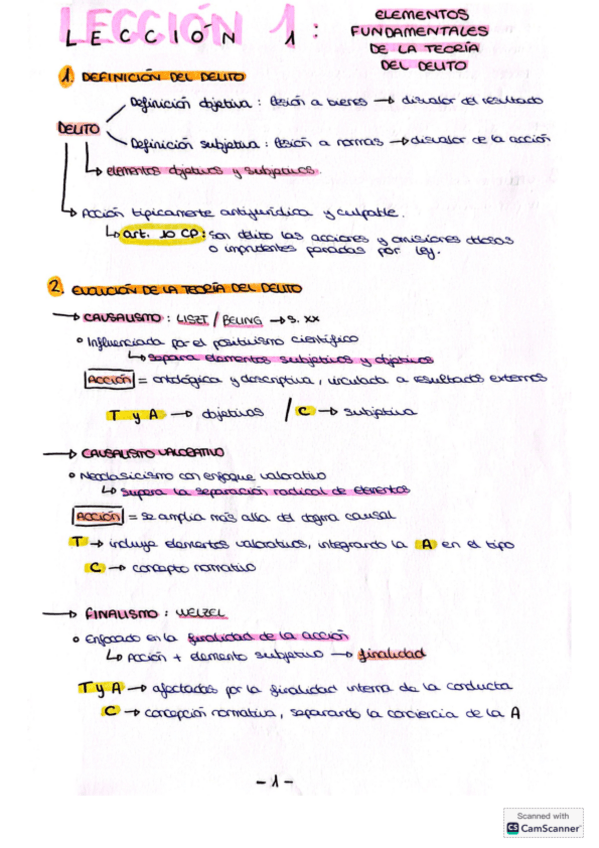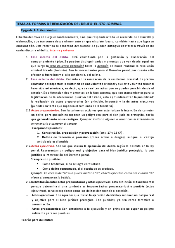 Esquemas de las lecciones 1 a la 6 de la Teoría del Delito