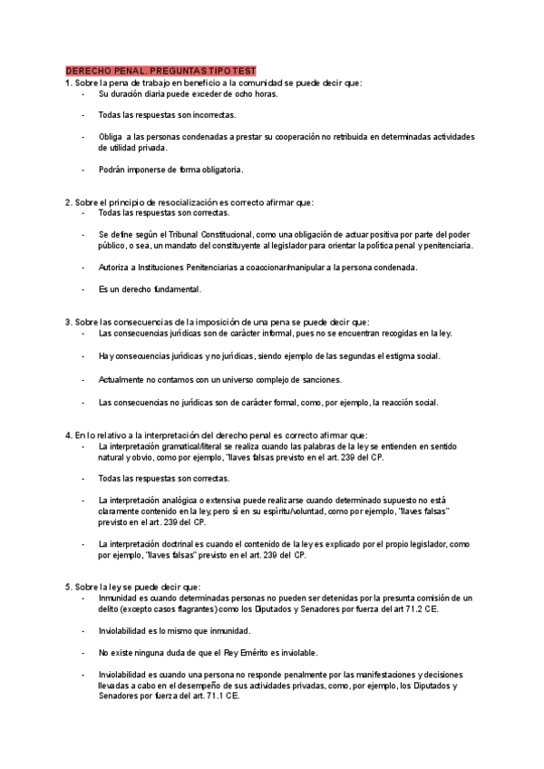 TIPO TEST DERECHO PENAL, PARTE GENERAL