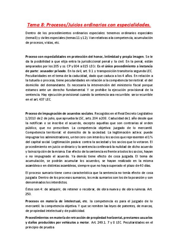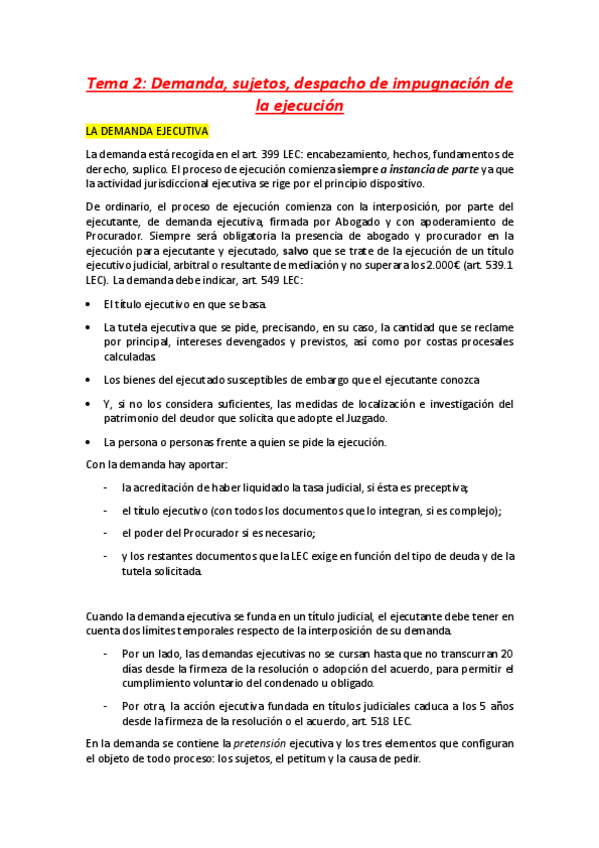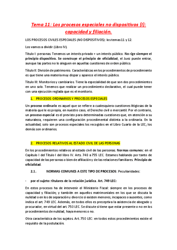 Procesal Civil II. Temario
