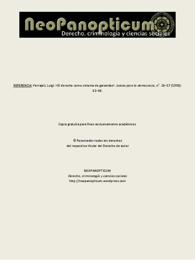 He publicado nuevos apuntes de 4º Derecho Procesal Constitucional: 2.-Ferrajoli-1992-El-Derecho-como-sistema-de-garantias.pdf