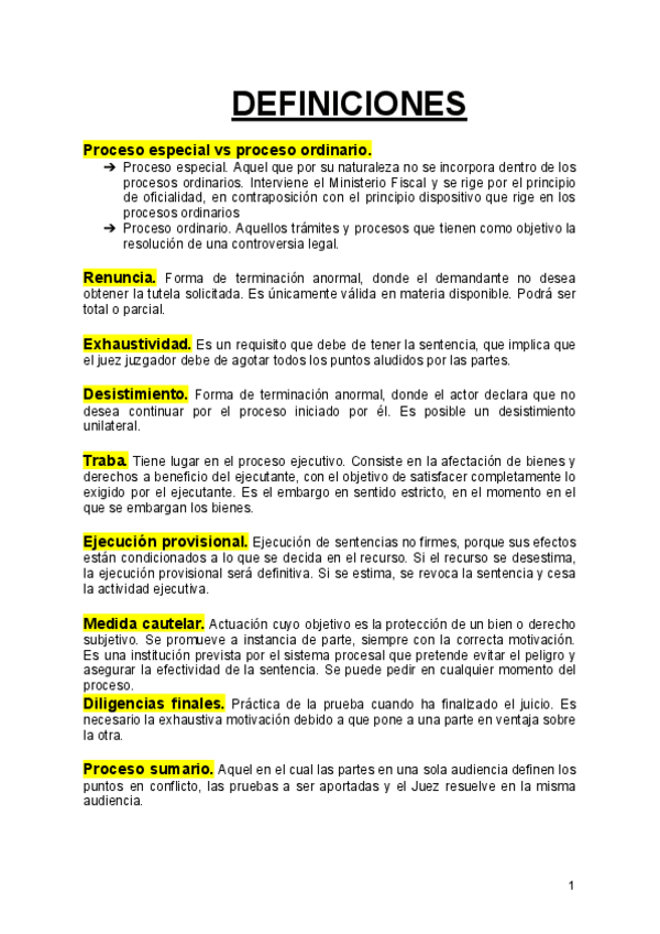 DEFINICIONES DE PROCESAL - Mª Luisa Villamarín
