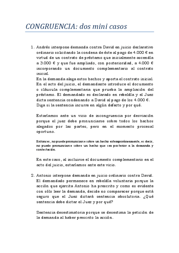 He publicado nuevos ejercicios de 3º Derecho Procesal: el Proceso Civil: Congruencia.-Mini-casos.pdf
