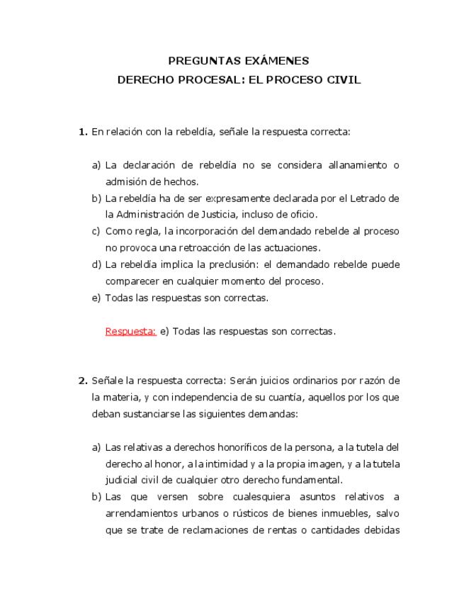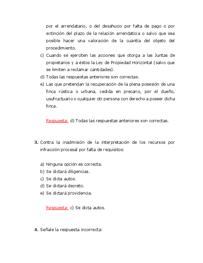 Recopilación de exámenes tipo test con respuesta de Derecho Procesal