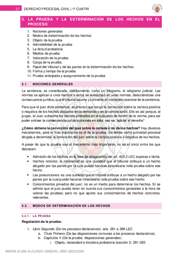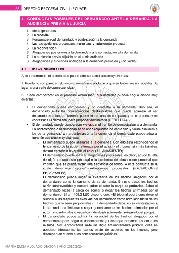 PROCESAL CIVIL II (2024) - MARÍA LUISA VILLAMARÍN LÓPEZ