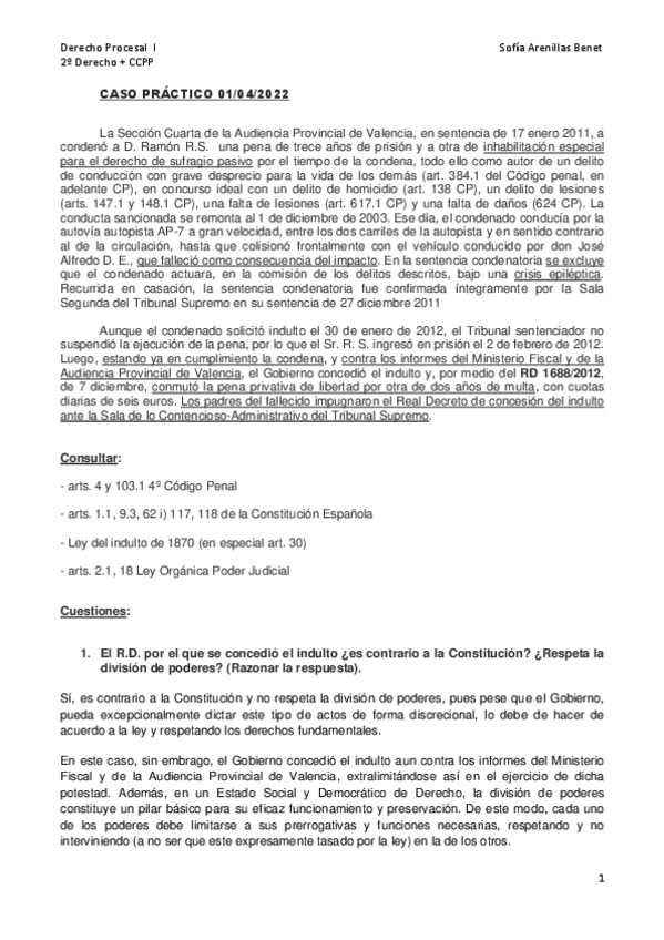 DERECHO PROCESAL I (PRÁCTICAS)