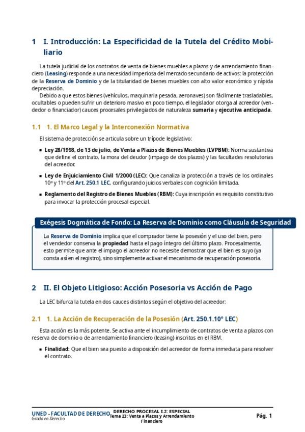 He publicado nuevos apuntes de 3º DERECHO PROCESAL I.2: ESPECIAL: TEMA-23-TUTELA-VENTA-PLAZOS-Y-LEASING-GUIA-SUPER-UTIL-EXAMEN.pdf